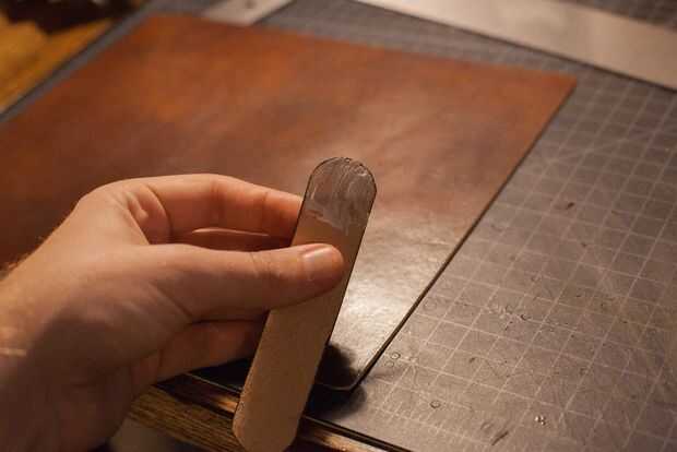 En general, la cola se adhiere mejor a la parte inferior de la piel de la parte superior. Si usted está encontrando difícil para el pegamento se adhiera, a menudo se arena a través de la capa superior de la piel donde el pegamento se va a aplicar, esto ayudará el pegamento se hunden en la piel y por lo tanto se adhieren mejor. Asegúrese de que no lije más allá de lo que será cubierto por el pegamento, en caso contrario se mostrará en el acabado del producto.