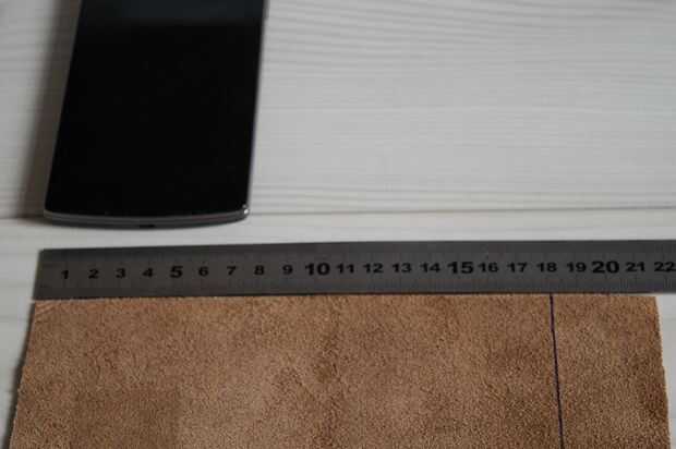 Medir el ancho de nuestro teléfono. El pedazo de cuero debe ser dos veces el ancho del teléfono, y 3 cm.