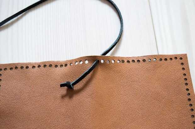 Para empezar, haga un nudo en el extremo de la cadena de cuero.