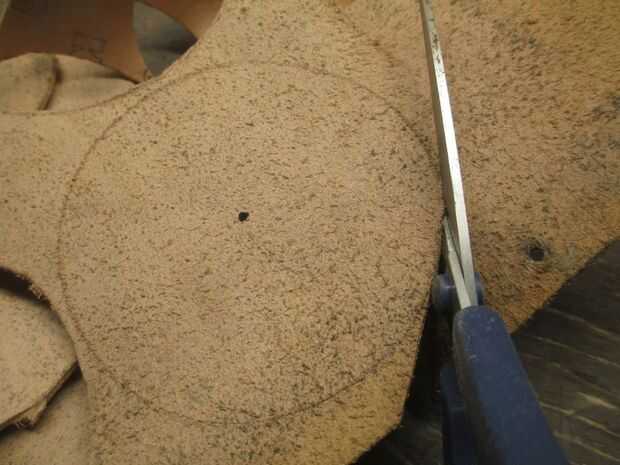Se utilizan unas tijeras afiladas para cortar el cuero. Esto puede ser un poco difícil, especialmente si las tijeras no cortan. Un cuchillo sobre una superficie plana lisa trabajar demasiado.