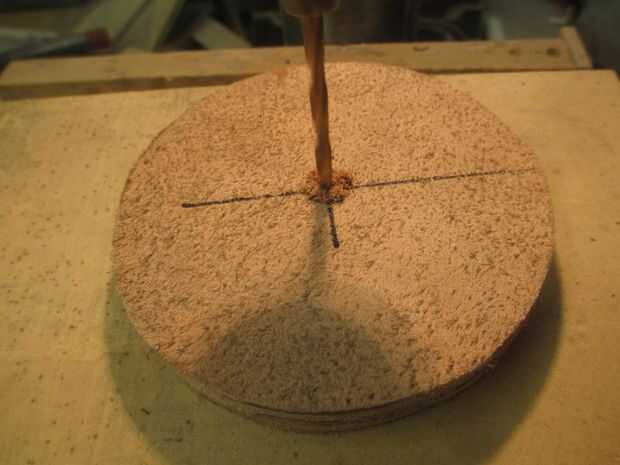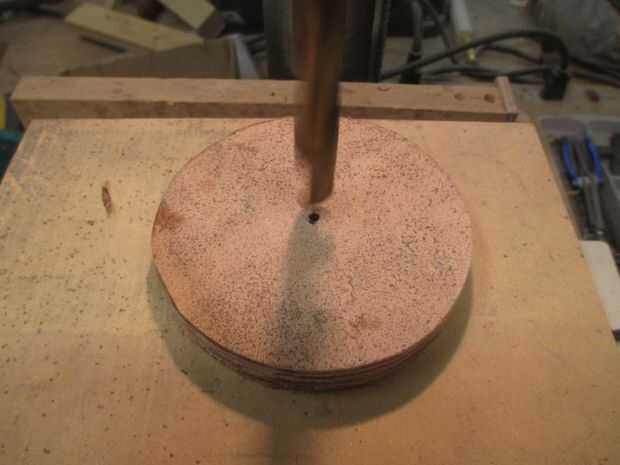 Ahora perfore un agujero más grande para que coincida con su molino o un tampón. Mi pequeño Delta tiene un eje de 1/2", usé una 1/2" broca.