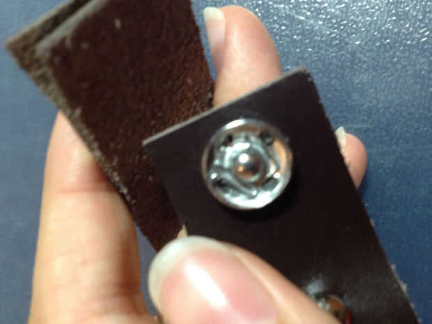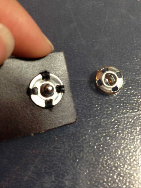 Pegue el botón femenino temporalmente a la masculina. Doble el puño entero en un círculo, con el fin de que no se pegan sobre los botones. Asegúrese de que los bordes se alinean muy bien. Presione el punto de los botones en el cuero - duro. Esto es para hacer un guión visible en la piel para que puedas tener un tiempo más fácil asociar el botón femenino con precisión. Entonces antes de que el guión se desvanece, marque con el lápiz. Las imágenes pueden explicar mejor que yo puedo, consulte a ellos si no está seguro.