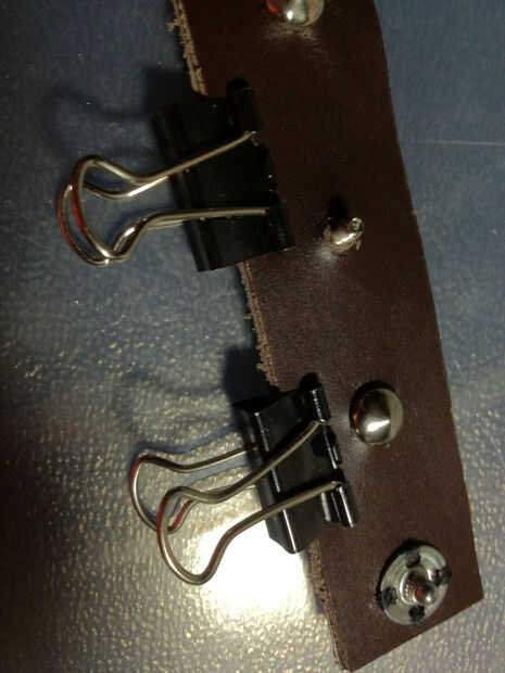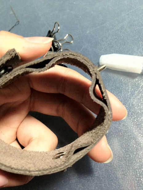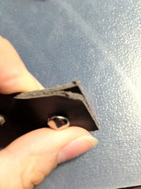 Cabe destacar que el pegamento hace la parte difusa de la piel realmente dura y áspera y oscura, así que procura no llegar allí. La parte difusa de la piel rápidamente empapará el superglue, así que es mejor colocar pegamento en el lado brillante de la piel.