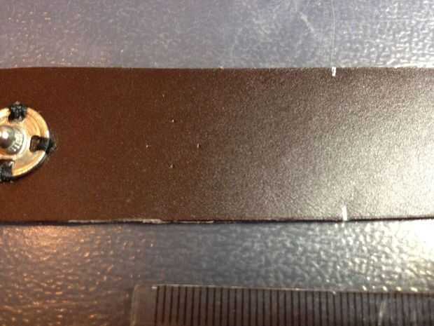 Ahora vamos a preparar los pinchos y hacer agujeros para los tornillos. Marque donde van sus picos y el agujero por donde vendrá a través de la piel y fije a la espiga del tornillo.