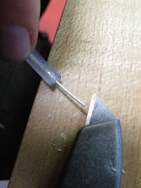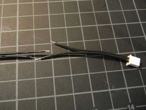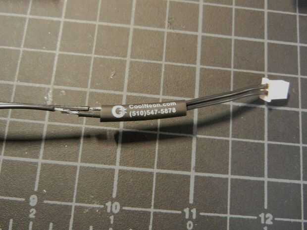-Una 3' sección del alambre rojo 5mm soldada directamente en el conector del lado del alambre