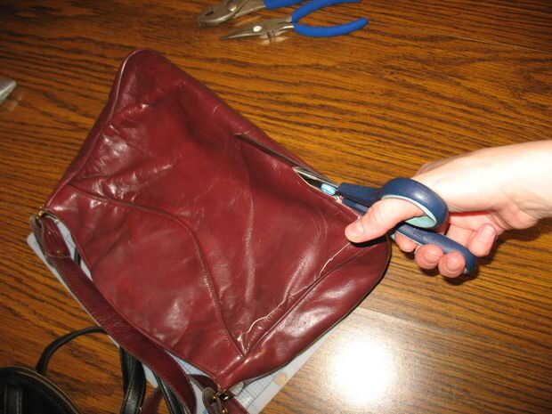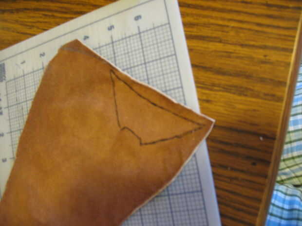 5. patrón de rastro en cuero. Usar al revés (el lado que no se mostrará) para tinta. Luego, utilizando unas tijeras afiladas, corte sus dos piezas laterales de cuero.