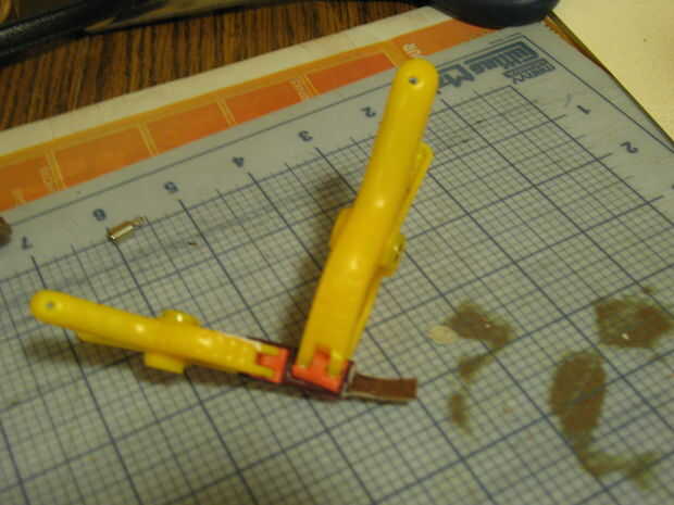10. Agregar 'tapones' a la nariz puente tabs. Las lengüetas laterales poco cortes se deslizarán en el interior de sus piezas de gafas donde el puente original de ball solía ser. El cuero debe ser sólo lo suficientemente delgado se deslice en su lugar, pero debido a esto, también requiere algo adicional en el interior de las gafas protectoras para evitar que se deslicen hacia fuera. Aquí es donde vienen tus resultados de joyería. Sólo necesita dos poco 'tapones' así que tratan de compinche para arriba con un joyero en este uno así no gastar $3 para comprar un montón de ellos cuando nunca se puede utilizar otra vez! Usando sus plyers, sujetarlos hacia abajo alrededor de los extremos de las pestañas, lo suficientemente cerca a la parte principal que no añadir anchura a través de la nariz, pero que puede todavía Deslice el puente en su lugar muy bien.