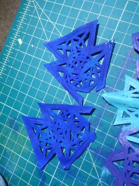 He tenido piezas extras que cortar y teñir por separado. Una vez que mi máscara estaba seco pude pegamento caliente las piezas donde yo quería.