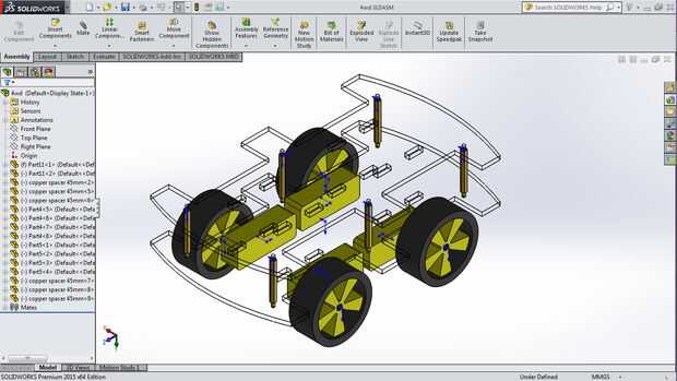 Aquí hay un enlace puede descargar el diseño y el montaje final, aviso que necesita SolidWorks 2015 para escuchar o editar piezas >> 4WD_Car_SolidWorks2015_design