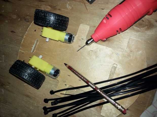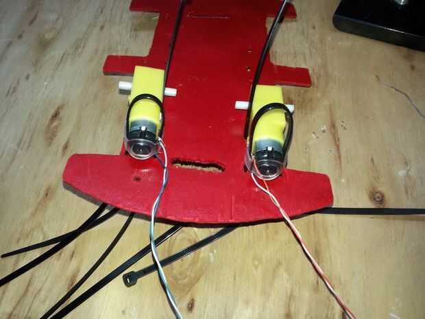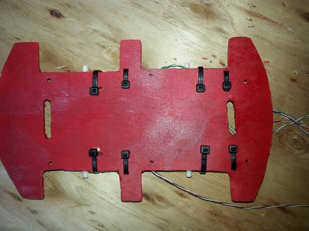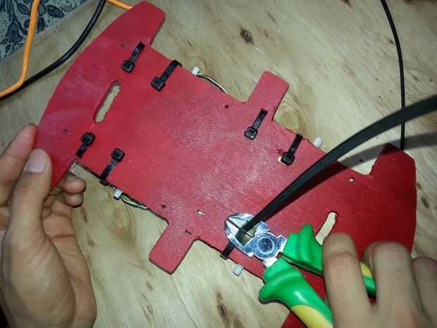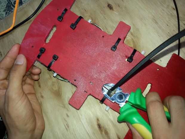 3. montar el engranaje del motor a la capa base con hacer hols para ataduras de cremallera y cierre.