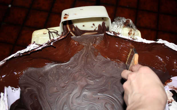 Después de crear algunas capas, usó un pincel para añadir más chocolate a las aristas y los puntos más débiles.