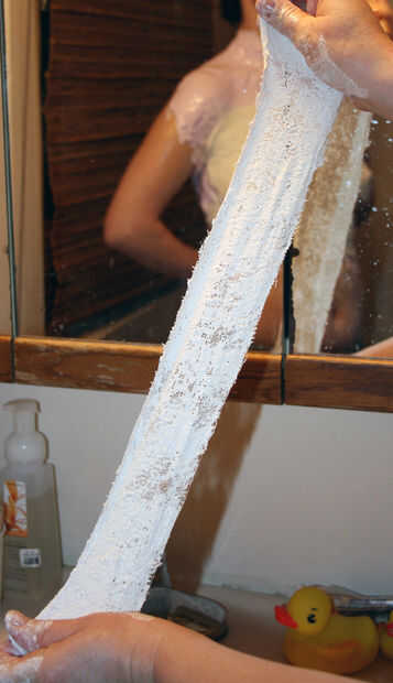 Mojar las tiras de vendaje en taza y exprimir hacia fuera exceso de agua.
