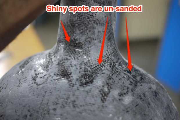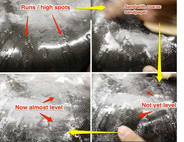 Uso moderado de este papel de lija de corse - epoxi no es fácil de romper, pero fácilmente se puede rayar lejos. Sólo la utilizó esto para el más alto de puntos altos, y francamente 120 o 180 grano podría ser una opción más segura. Una vez todo en su mayoría incluso, subir a un grano más y empezar a lijar mojado.