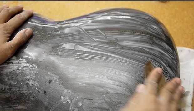 - Una vez seco, he enjugado polvo restante con un paño de la tachuela y vieron la superficie. Estaba buscando el patrón rayado - un uniforme gris con arañazos uniformemente espaciados y tamaño.