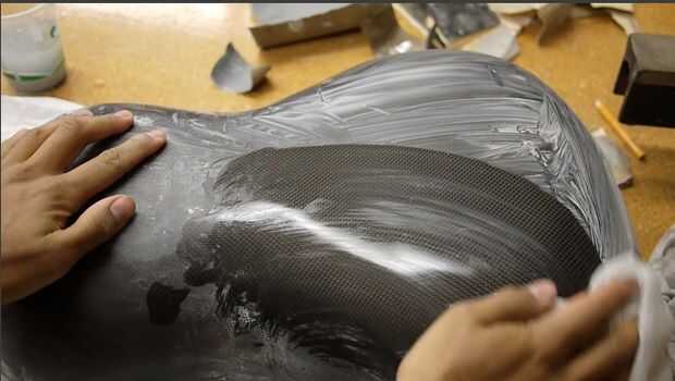 Además de epoxy, también puede utilizar otros acabados que vi una persona use poliuretano y acabado otro epoxi uso negro teñido de un negro mate. Pero quería el tejido de fibra de carbono para mostrar a través de en la mía, por lo que acababa de usar el epoxi marino mismo que había utilizado para formar el cuerpo.