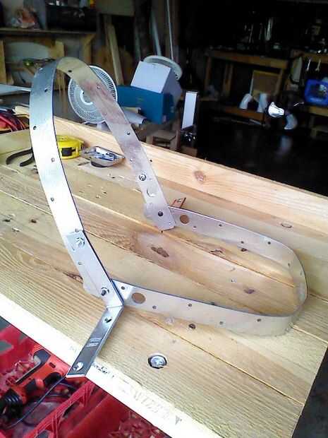 Si pueden mendigar un cartel de venta estándar, la clase en una estaca de madera, estará por delante. Si no, se hacen fácilmente. Usted necesita dos conectores USP de madera que se puede encontrar en la sección de madera en el hogar Depot o Lowe o la ferretería de su preferencia. Conseguir los largos ya que tienen que doblar todo el camino alrededor de su torso y sobre su hombro. Esto depende de su tamaño - perno dos juntos si es necesario. Haz dos soportes en forma de L con cuatro agujeros total. (Ver fotos) Necesitarás cuatro pequeñas tuercas y tornillos para unir la contracción completa y cuatro clavos o pernos para fijar la señal real a la plataforma. Más en el paso siguiente. como herramientas, no necesita mucho. Un taladro para poner unos agujeros en los conectores de madera y una sierra para metales a toma las puntas de las uñas. Vas a necesitar un destornillador y alicates para apretar las tuercas y los pernos.