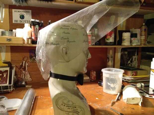 Esto es donde ese busto guapo va a venir bien.  ¡ Utilícelo!  Forma el cuervo encima de la cabeza del busto esa manera usted no obtiene poked o perder un ojo.  Después de las asperezas se elaboran entonces usted puede poner tu cabeza.  Tengo una cabeza pequeñita por lo que era realmente importante moldear el alambre para me.
