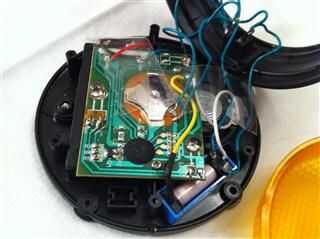 El botón se modifica para cumplir tres funciones: * primero, para traer a la caja de control una línea cuando se pulse el botón. * En segundo lugar, para hacer una línea desde la caja de control del botón para encender las luces y sonido. * En tercer lugar, proporcionar un relé que permite el sonido ser dado vuelta apagado.