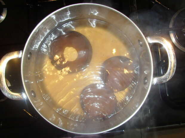 Hervir la cáscara en una cacerola durante 10 minutos, repitiendo el proceso de ebullición hasta que el agua se vuelve claro.