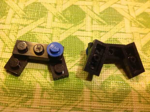 Todo lo que necesitas para los controladores es una placa negra de 1 x 3, 2 placas de 1 x 2 negro y uno o dos postes de madera coloridos (azul, rojo, verde claro, naranja o amarillo). Ponga 1 x 3 del 1x2s después doblarlas un poco por lo que no es tan cuadrado. Luego poner los pies en el 1 x 3.