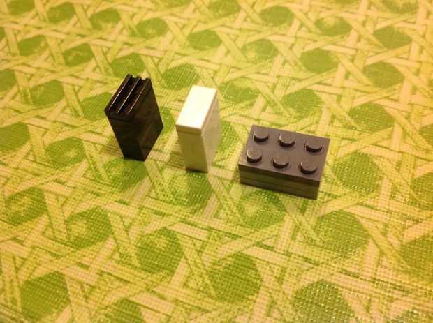 No importa realmente cómo hacer las consolas. Acaba de poner una ficha en un color que empareja 1 x 2 y también apilar 2 2 x 3 así que no eran todos iguales. La plataforma de videojuegos es un negro de 2 x 3, entonces un 1 x 3 blanco y negro de diferentes colores 2 x 2 (todas las placas).