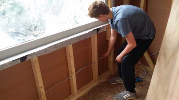 Para ahorrar dinero usa a mi hijo para hacer el trabajo eléctrico, pero l aconseja el uso de un electricista calificado.