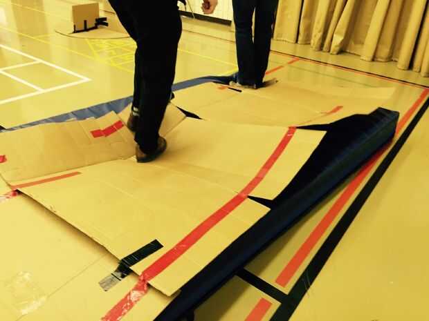 Ponga la cartulina sobre una superficie suave y caminar sobre ella para romper la rigidez del cartón. Esto ayudará a que doblan a la forma de los soportes del semicírculo.