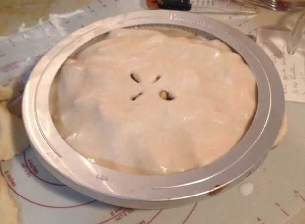 Nota: Una cubierta de corteza de pastel se puede hacer doblando pedazos de papel de estaño y colocarlos alrededor del borde de la tarta.