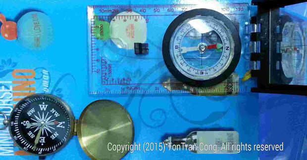 Así que he podido volver a magnetizar (en cualquier dirección de elección) la aguja de un compás (el compás base claro con un espejo) como se muestra en las dos primeras fotos. El imán que usé me cuesta en $0 .30usd y se muestra en el cuadro tercero, compuesto.