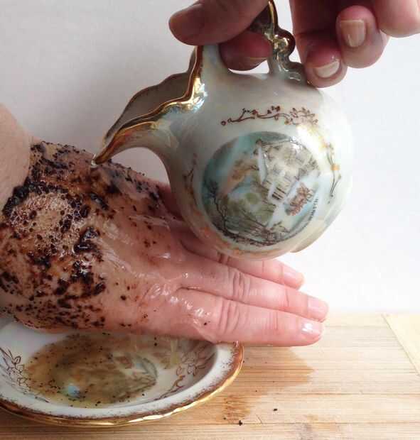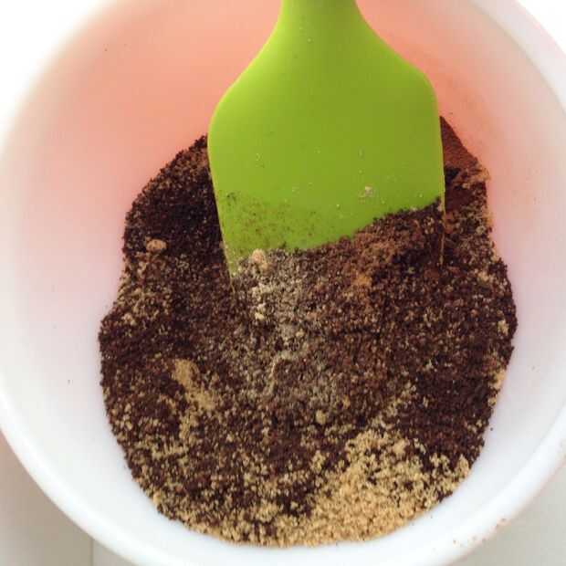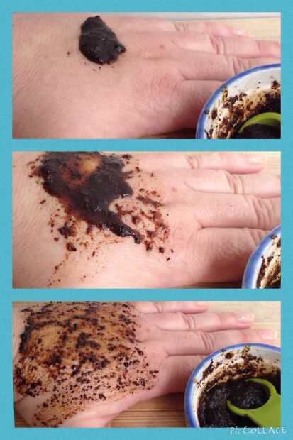 Nota: Este es un exfoliante muy desordenado, pero huele increíble y hace que tu piel sienta genial. Asegúrese de usar en la bañera o con los pies en una palangana y agua para enjuagar a tu lado. Para que sea menos desordenado, uso previamente preparado café.