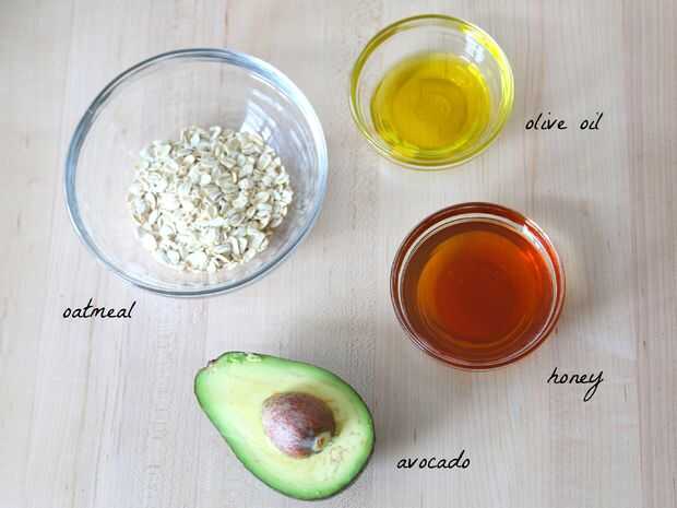 Combinar el puré de aguacate, avena y miel. Mezclar en la pasta, agregar aceite de oliva si es necesario. Aplicar tantas veces como sea necesario, dejando en 15 minutos.