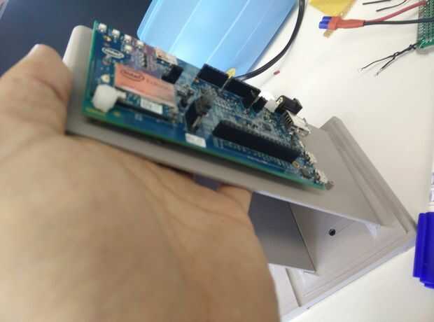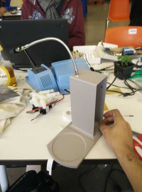 Por último juntamos las piezas. Esto incluyó un brazo de un 3ro herramienta de la mano para sostener la luz resplandor sobre la planta y parte de la caja de Edison para sostener la bomba de agua. También tuvimos que perforar unos agujeros extras para mover el montaje de la Junta como no había suficiente espacio para conectar la alimentación.