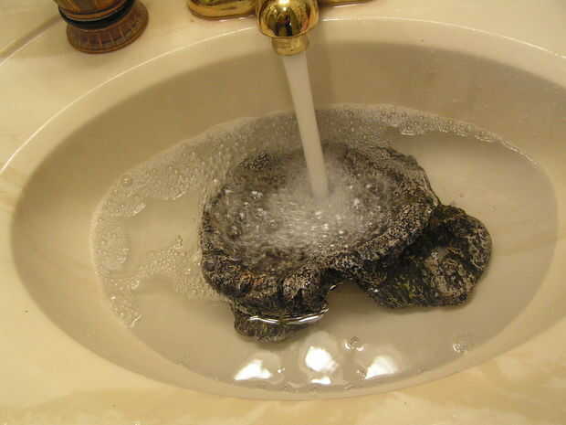 Llenado fregadero con agua caliente esta vez agregar 2-3 cucharas de mesa de Listerine.