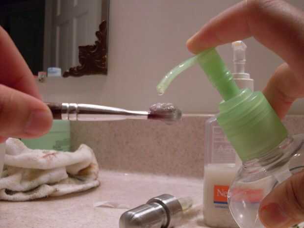 debe ser capaz de simplemente sumerja el cepillo en el agua y agítelo alrededor. el residuo más es en el pincel, cuanto más tiempo que usted querrá pasar a limpiarlo. Frote el cepillo mojado en su palma como si estuvieran pintando, o simplemente frotar las cerdas entre dos dedos. tenga cuidado de no frotar demasiado fuerte y tirar de las cerdas hacia fuera!