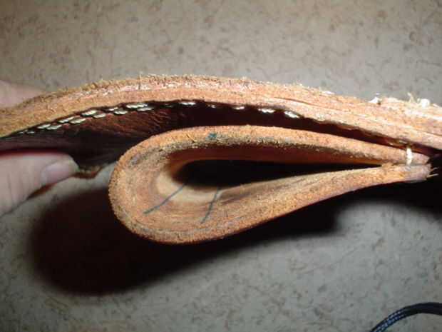 Aquí es una foto del lado de la funda, que muestra su construcción.