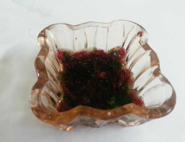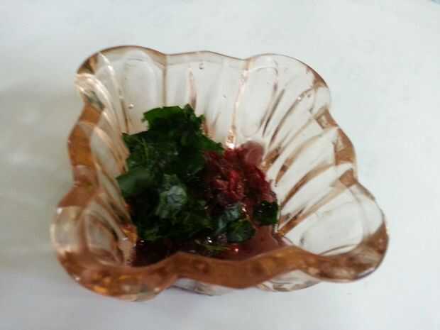 tomar un recipiente y agregar las flores machacadas y las hojas en él.