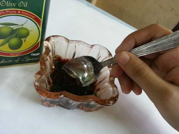 Añadir agua a los pétalos machacados y las hojas para hacer una pasta.