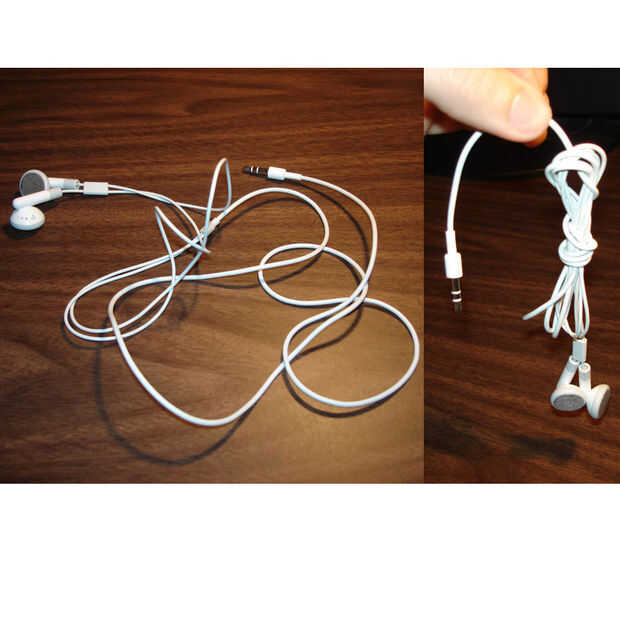 Video que muestra un lento iPod auriculares envolver y desenvolver: