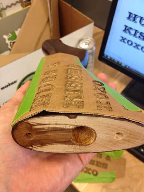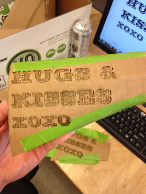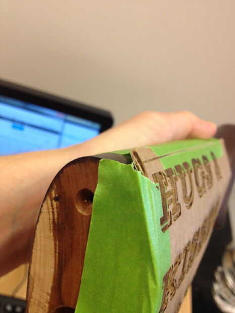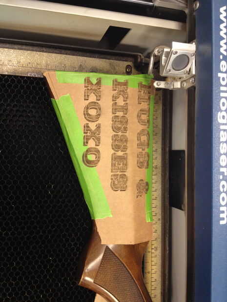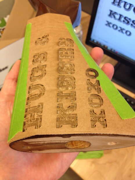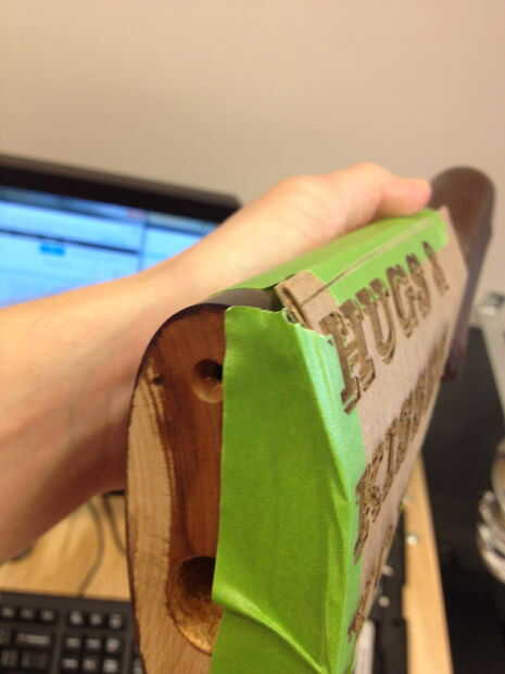 Después de la aguafuerte del laser ha terminado, compruebe los resultados.  El cartón le dará una buena idea de donde usted necesita realizar cambios.  Encontré que tenía que utilizar texto más pequeño por lo que quedaría dentro de la acción sin overshooti.