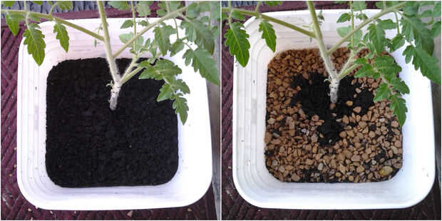2. Añadir piedras para cubrir el fondo. garantizar su suelo a ser ventilado hacia fuera y seco en todo momento, especialmente la parte inferior de la zona de cubo. Esto es donde la pudrición de la raíz ocurre en un mal suelo drenado. las rocas actúa como un filtro de aire entre el orificio de drenaje y raíces/suelo. una medida fácil y barata.
