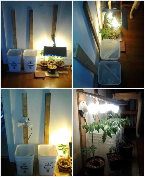 y cada cubo tiene un zócalo de base, con un y-divisor y 2 CFL adjunta (4 x 2700 K y 2 x 5000 K). Los CFLs son 100W equivalente y tenemos 6 de ellos. así que esto es realmente un 600W (utilizando sólo de 140W) crecen sistema. no es sólo un simple juguete...
