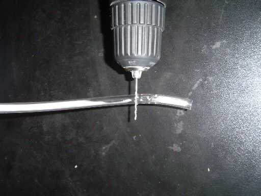 Para hacer esto, simplemente me perforó un montón de agujeros en el tubo y había prensado final. Taladro de acumulan suficientes agujeros para eliminar la presión y para cubrir la zona deseada dentro de la botella.