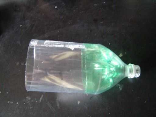 2. invertir filtro (uno verde) e insertar en la parte superior de la botella para formar una cesta en la parte inferior de la "cultivador".