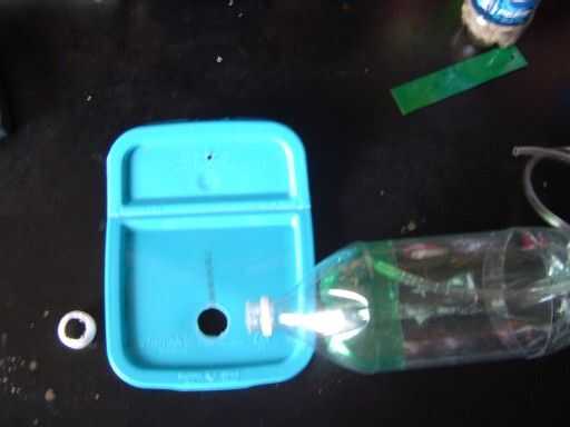 4. Fije el "productor" al soporte. En mi caso, perforé un orificio de 1 pulgada a través de alguna tapa de plástico,