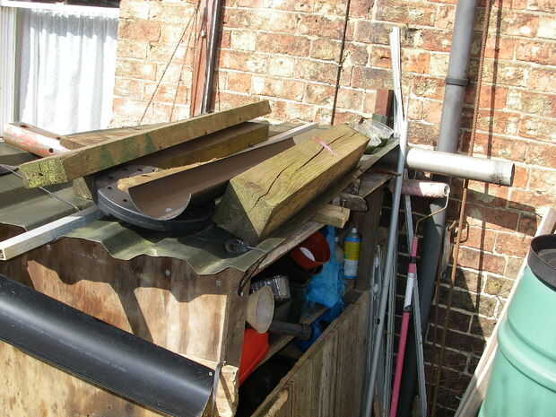 Estos jardines de plataforma están apoyado contra la valla en mi pequeño jardín urbano. Utilizo el interior espacio entre la tela jardinería 2 x 4 y grapa a la madera para crear una jardinera casi oculto, de aspecto rústico a mi espacio exterior.Usar