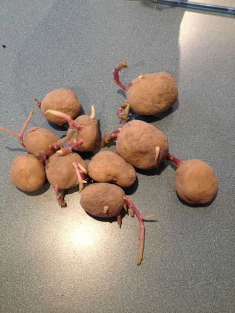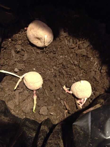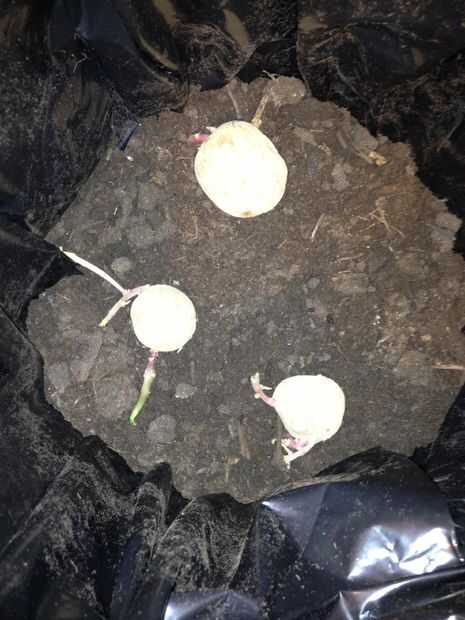 Ahora saca tus papas y lugar 3 en el cubo encima de la tierra, después añadir 2 pulgadas de tierra en la parte superior