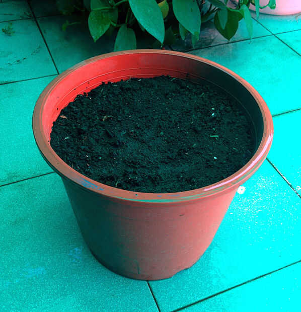 1. Llena la maceta con grava (para el drenaje del exceso de agua) y luego jardín suelo (debe ser bien drenado). Puede comprar suelo o prepararte. Preparo mi suelo con 50% negro crecido suelo, estiércol de estiércol de vaca de 40%, 10% arena. También he añadido una mano llena de turba de coco para promover mejor retención de la humedad porque se pone muy caliente aquí en esta temporada.