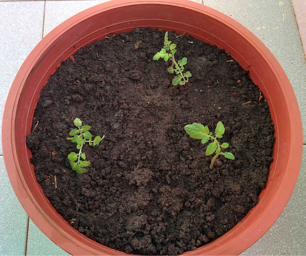 Fácilmente puede crecer 3-4 plantas de tomate cherry en un recipiente de 10".