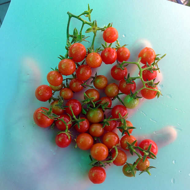 Las fotos de arriba muestra mi reciente cosecha de las plantas de tomate cherry totalmente crecido crecido utilizando los cortes:)
