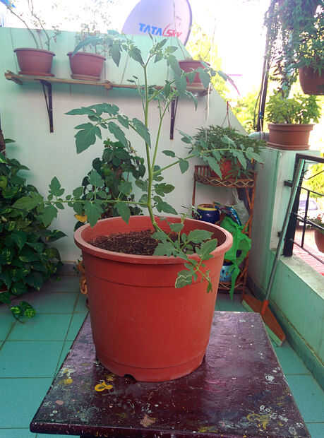 Ahora se mantiene a pleno sol y ha crecido casi un pies de altura e incluso comenzaron a flor. Estoy seguro de que en una semana o dos yo debo poder actualizar con frutas.